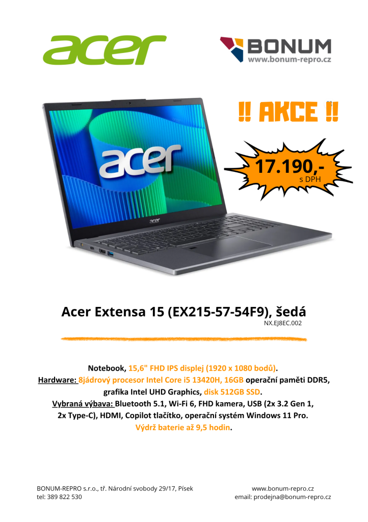 - Záruční i pozáruční servis značky Acer (servisní partner „Acer Solution“)